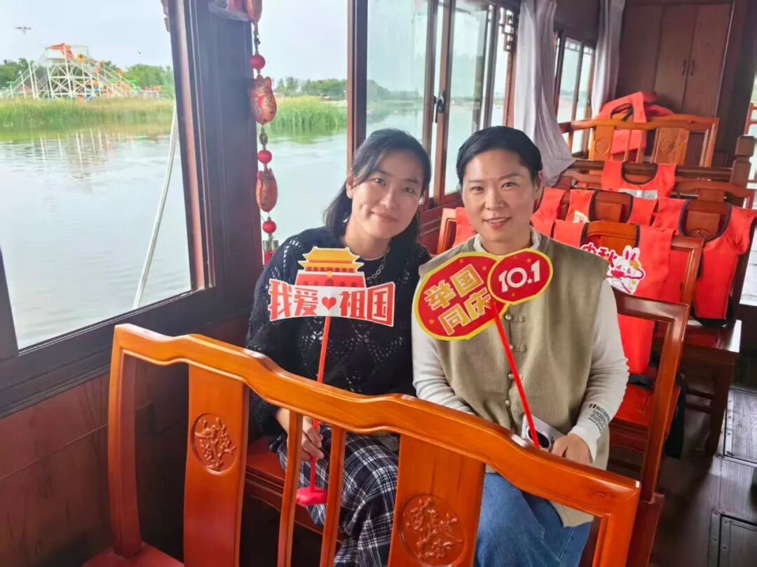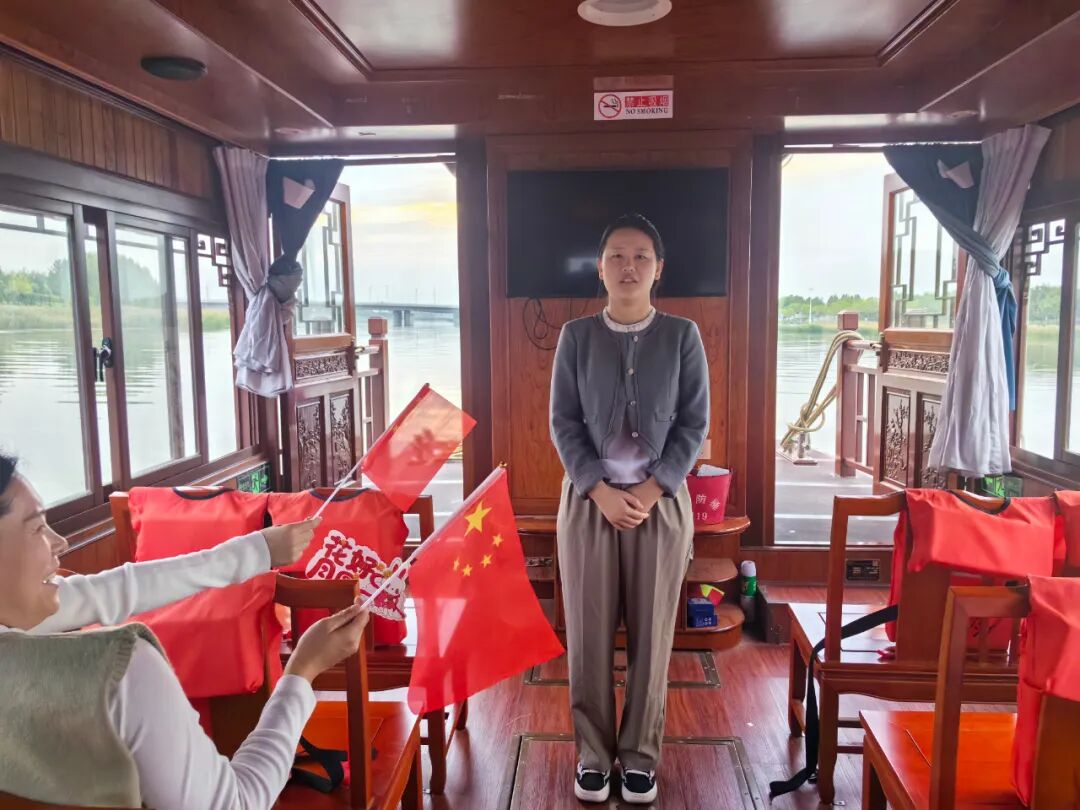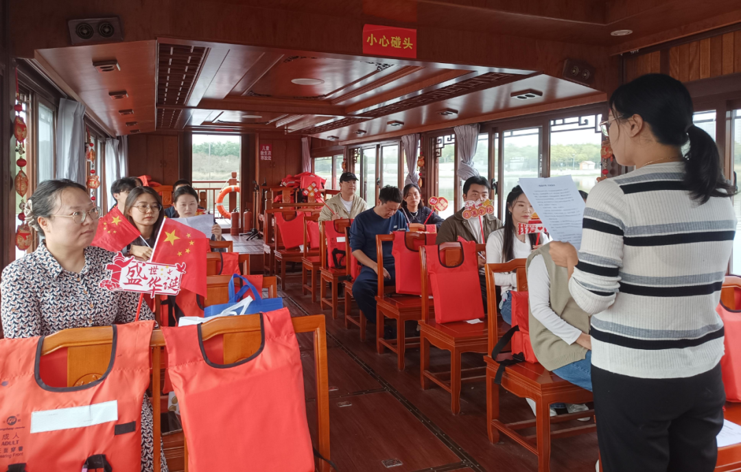 中心组织全体人员前往大沙河,乘船泛舟河上。清风拂过河面,两岸风光尽收眼底,在悠然惬意的氛围中,大家暂别工作的忙碌,以亲近自然的方式开启庆祝国庆的序幕。手中一面面鲜红的国旗承载着对祖国的赤诚,爱国的热忱从指尖蔓延至心间。