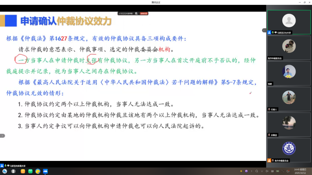为加强仲裁员队伍建设,提升仲裁员专业化水平和实践能力,规范仲裁办案程序。10月12日,由焦作市司法局主办、焦作仲裁案件受理中心承办的第三期仲裁员线上培训活动成功举办。第三届焦作仲裁委员会组成人员、仲裁员、仲裁秘书、焦作仲裁委员会各派出机构人员、焦作仲裁案件受理中心工作人员、河南省内多家仲裁机构工作人员等共计200余人参加了此次培训。